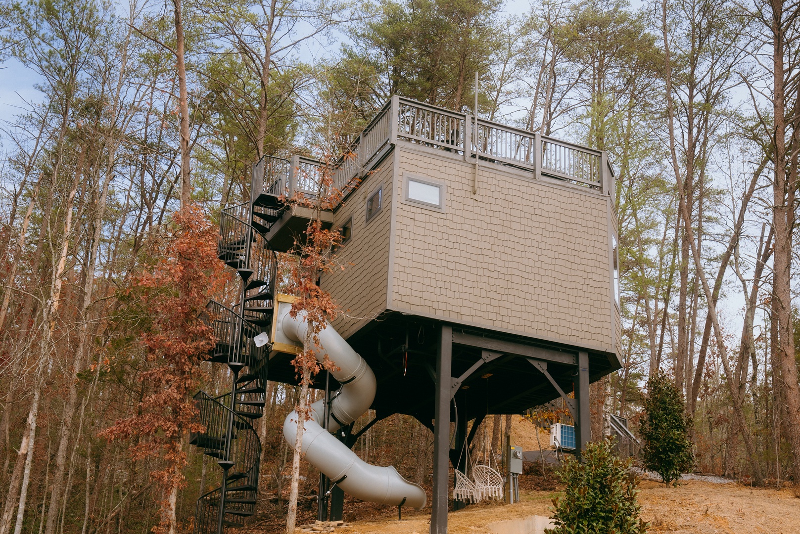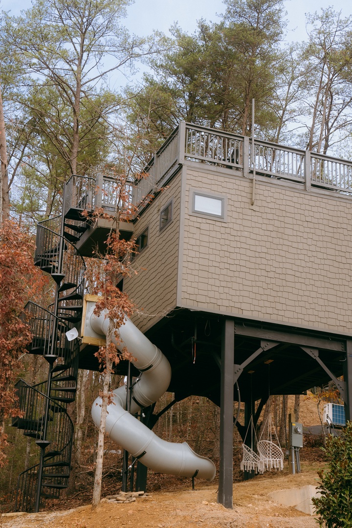 - Treehouse with tunnel slide