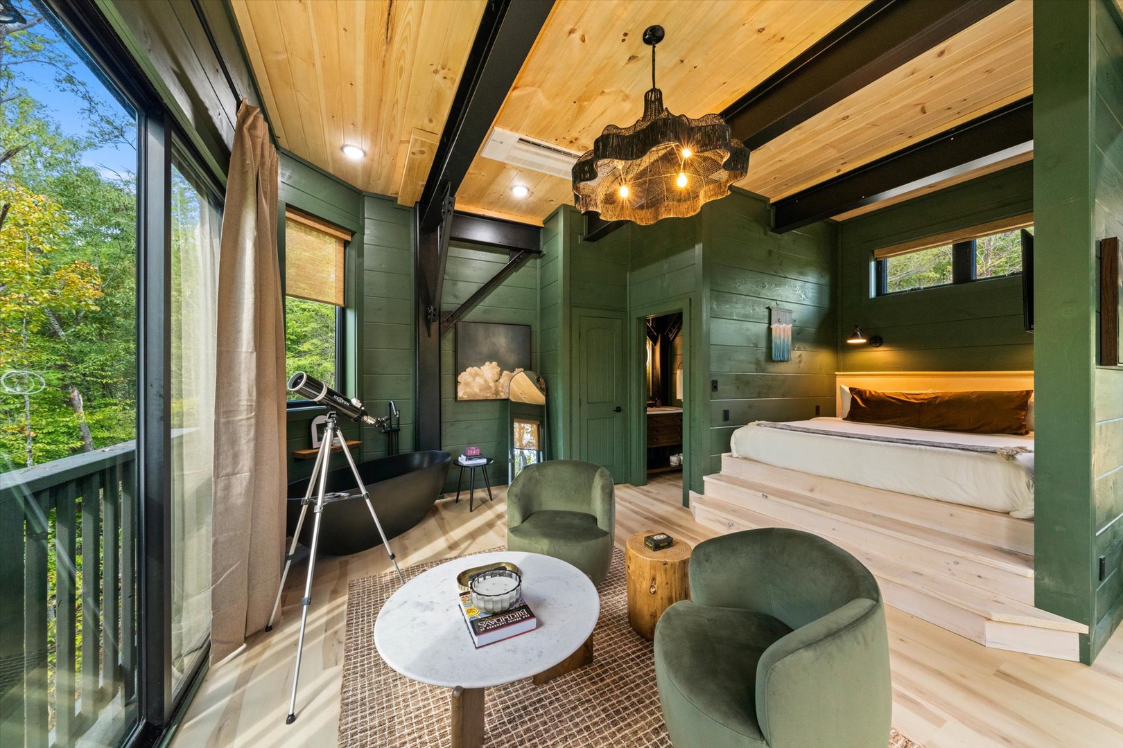 Whether you're celebrating an anniversary, honeymoon, or simply escaping for a romantic retreat, our Treehouse sets the stage for unforgettable moments. Soak in the private hot tub, cozy up by the fire pit under the stars, and enjoy intimate evenings with sunsets on the stargazing deck. With every detail designed for connection and relaxation, it's the perfect setting.