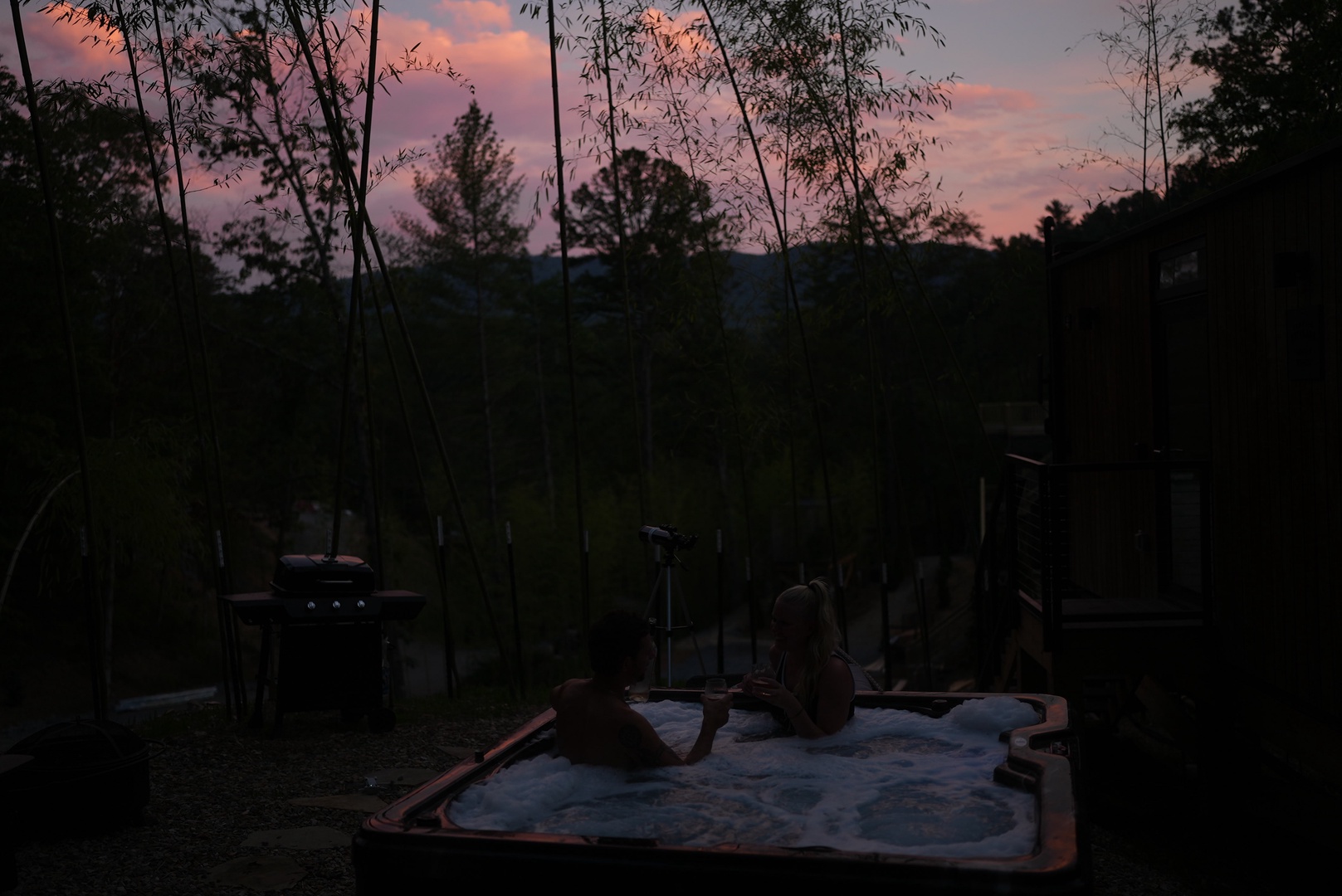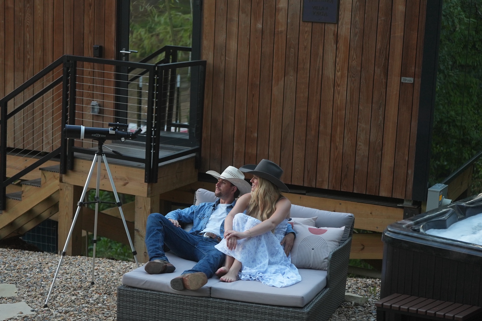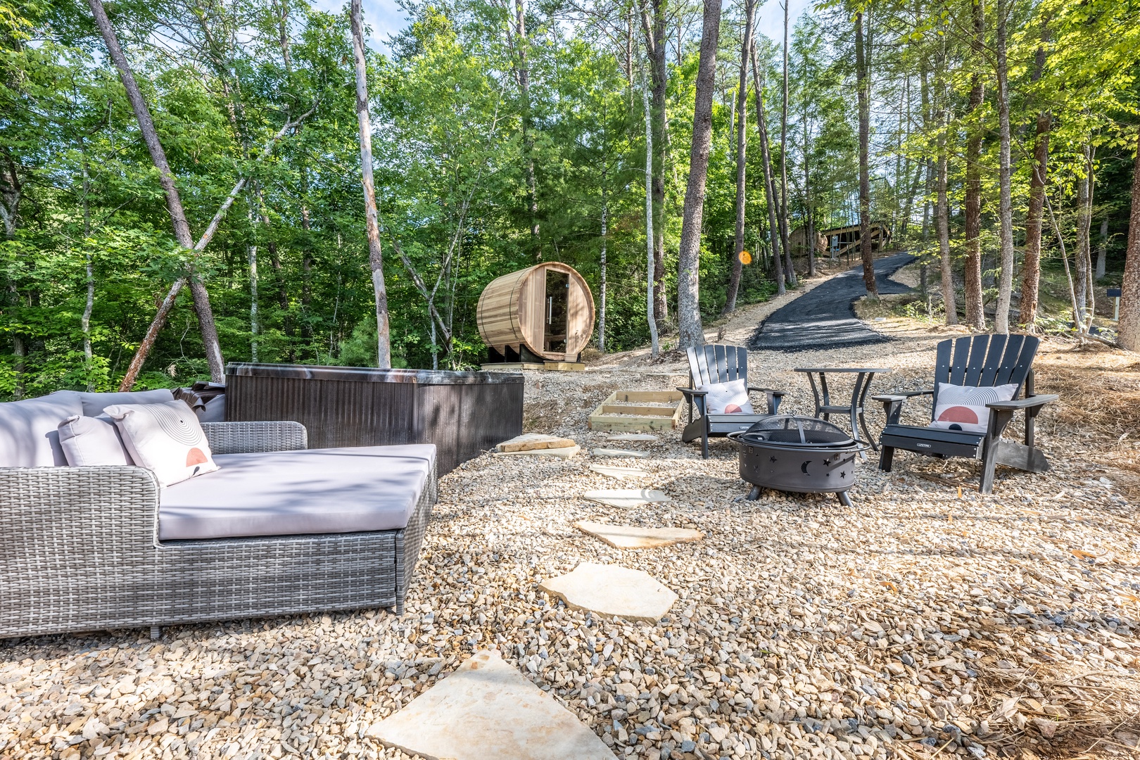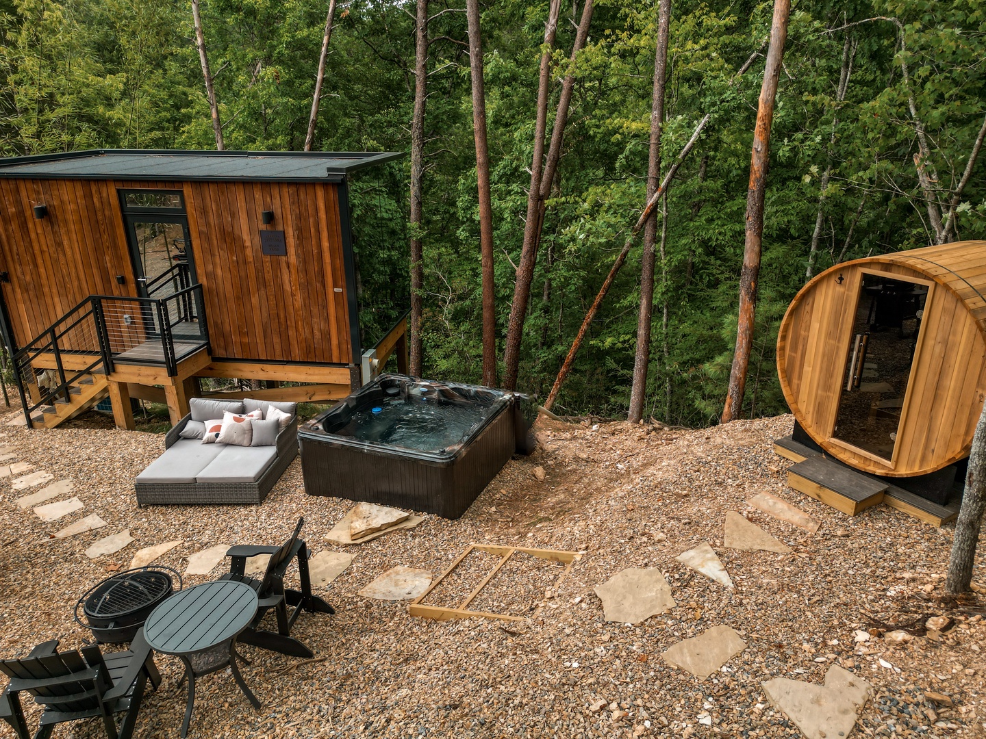 -   Stargazing bed, sauna, fire pit, hot tub and private eating area